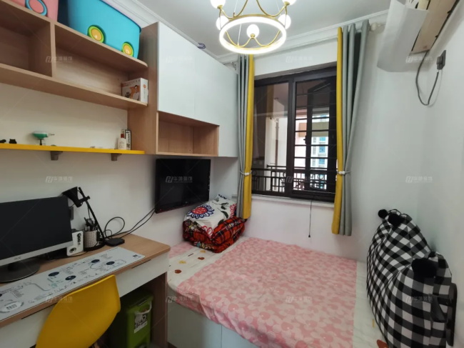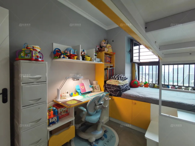 兒童房是一個(gè)“大胃王”,上下鋪+寫字桌,飄窗床+飄窗柜,把儲(chǔ)物做到了極致。