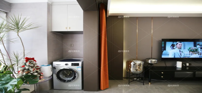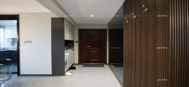 入戶做了一組三段式玄關(guān)柜,嵌入感應(yīng)燈帶,有人在就會一直有光亮。還有一個咖色的穿衣鏡,不僅可以整理妝容,還能在視覺上延伸空間。再進來是小格柵包角設(shè)計的掛衣區(qū),很別致。