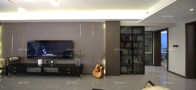 這是一個充滿文化熏陶的家庭,太太鐘愛吉他,孩子熱愛繪畫,梁老師喜歡讀書。所以在整案風(fēng)格的定位中,他們有很多自己的想法和需求在,再結(jié)合設(shè)計師的獨到見解,最終以港式后現(xiàn)代風(fēng)格呈現(xiàn),輕度的奢侈,低調(diào)的奢華。