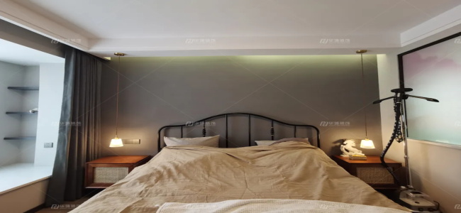 主臥最大的亮點在于儲物,一整面墻的衣柜,可以把心愛的衣服包包全部收納。在燈光的處理上,設(shè)計師以“見光不見燈”的構(gòu)思布局,不管是聊天、看書還是起夜,燈帶里的光亮都會滿足你的需求,還不至于晃眼。