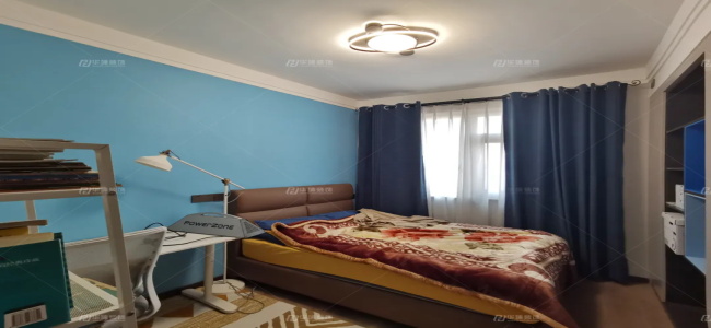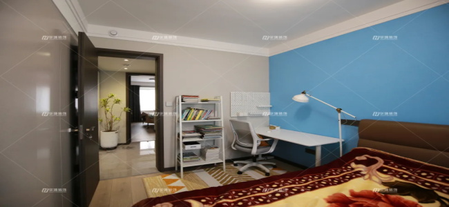 次臥是改造后的兒童房,通過墻體的后移增大了內(nèi)部使用空間,留出了書桌書架的位置,便于孩子學(xué)習(xí)。