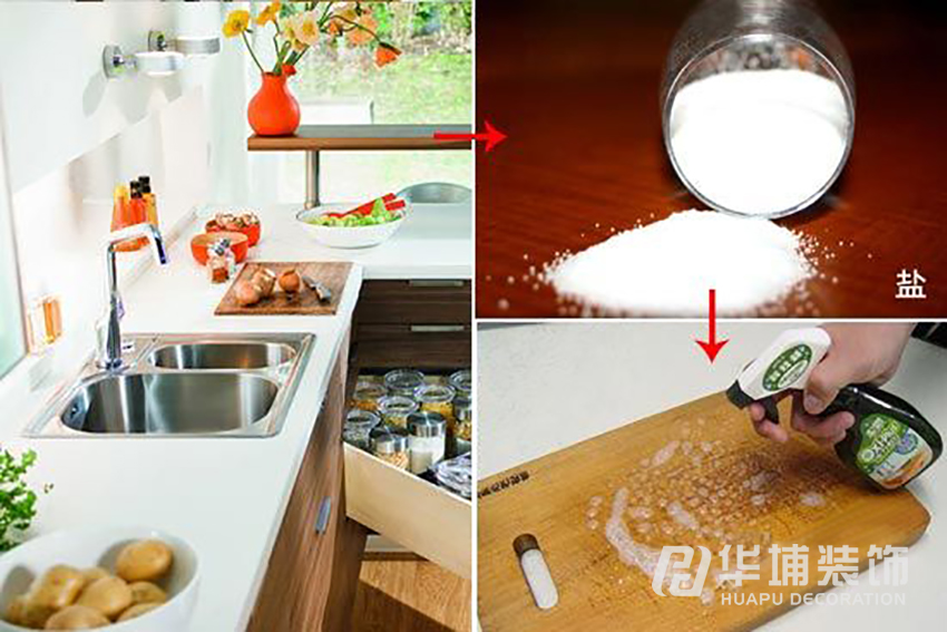 操作臺清潔:每次使用砧板后,都要用刀將板面的殘渣刮凈,每隔6-7天在板面上撒一層鹽,起到殺菌和抗干裂的作用。操作臺也需要清洗干凈,再用干布擦干凈,切忌有積水。