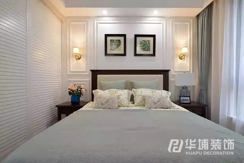 臥室沒有濃烈的色彩,相反,簡(jiǎn)單而清透。木質(zhì)的大床,純凈的白色石膏線條框,干干凈凈,清清爽爽,一切都是那么自然溫和。