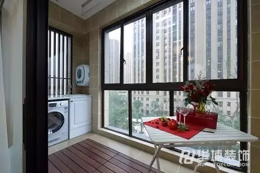還算比較寬敞的陽臺(tái),一頭作為洗衣區(qū)域,一頭作為養(yǎng)花區(qū)域,實(shí)用休閑兩不誤。