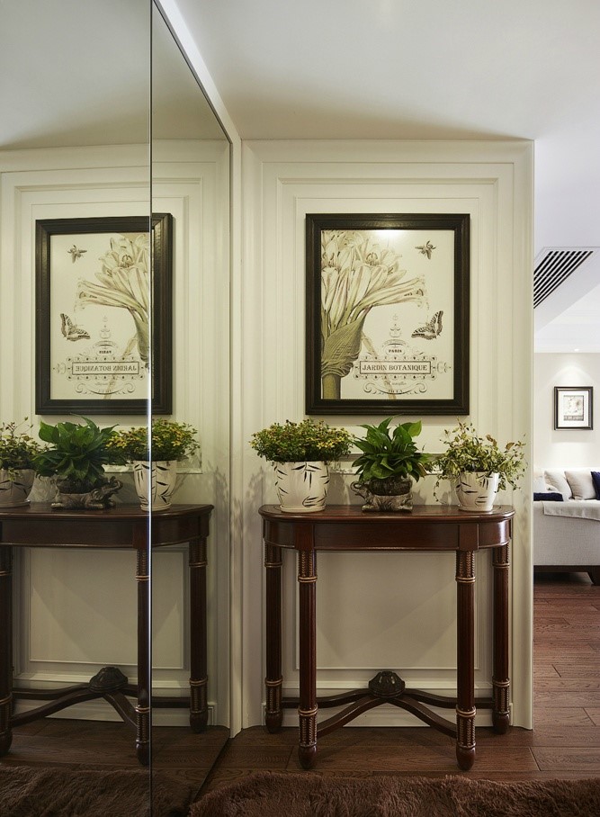 古色金屬支臺(tái),配黑白花紋地毯,更有一種復(fù)古感。
