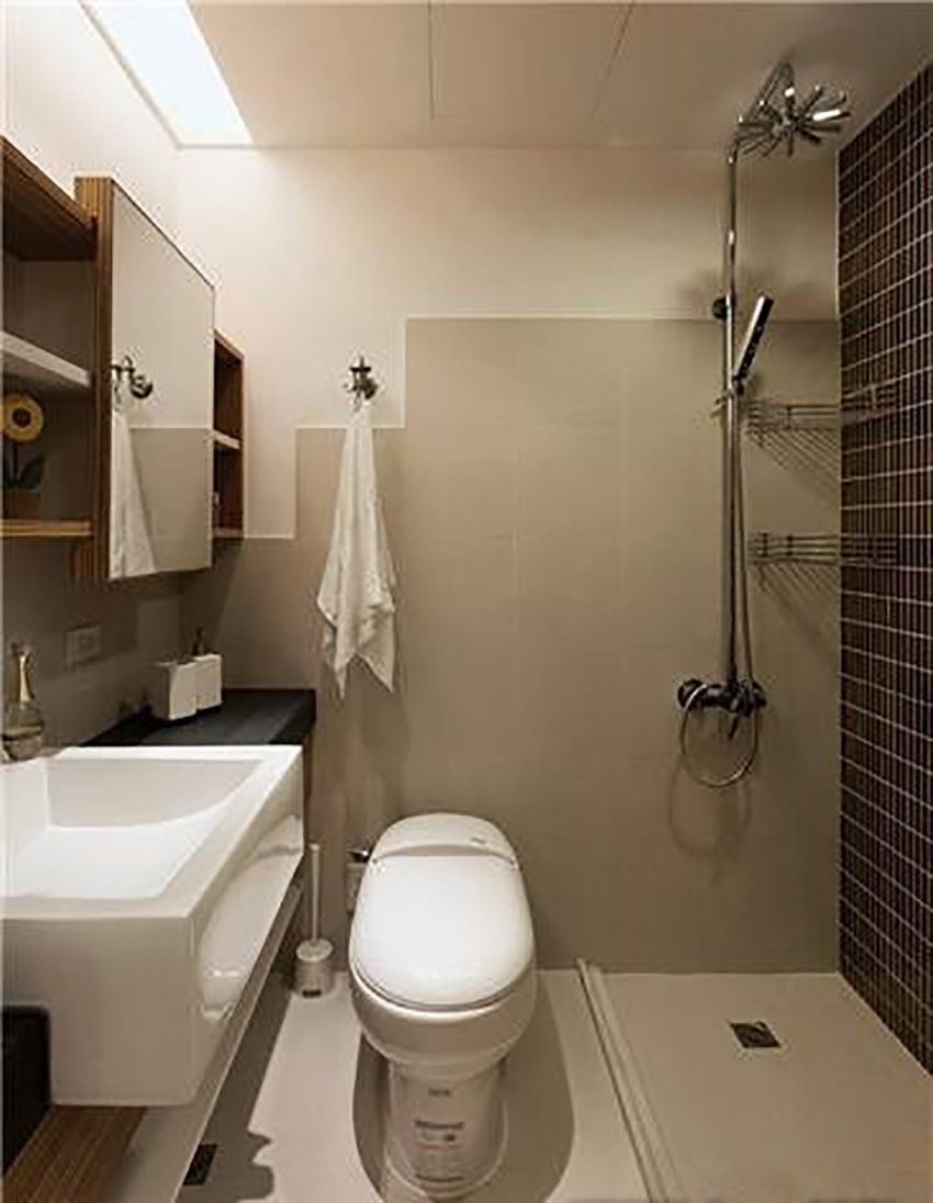 9.衛(wèi)生間盡量干濕分區(qū),如果面積比較偏小可以設(shè)置一個防水的小柜子收納雜物,既實(shí)用又美觀。
