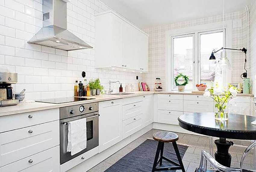 二是廚房面積小,或者是使用整體櫥柜的家庭,櫥柜高度和腰線高度都是差不多的80-90厘米,腰線剛好出現(xiàn)在櫥柜臺面上方不僅沒有裝飾作用還顯得凌亂。