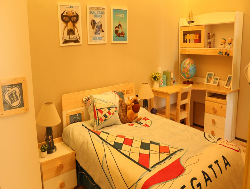 兒童房合適的照明,能使房間溫暖、有安全感,有助于消除孩童獨(dú)處時(shí)的恐懼感。兒童房要有一盞主燈,就是照明燈,起到完全照明的作用;另外,在小桌子上放置一盞臺(tái)燈,墻壁上放置一些造型可愛、光線溫馨的壁燈,可以給孩子營(yíng)造一種童話般的感覺。。