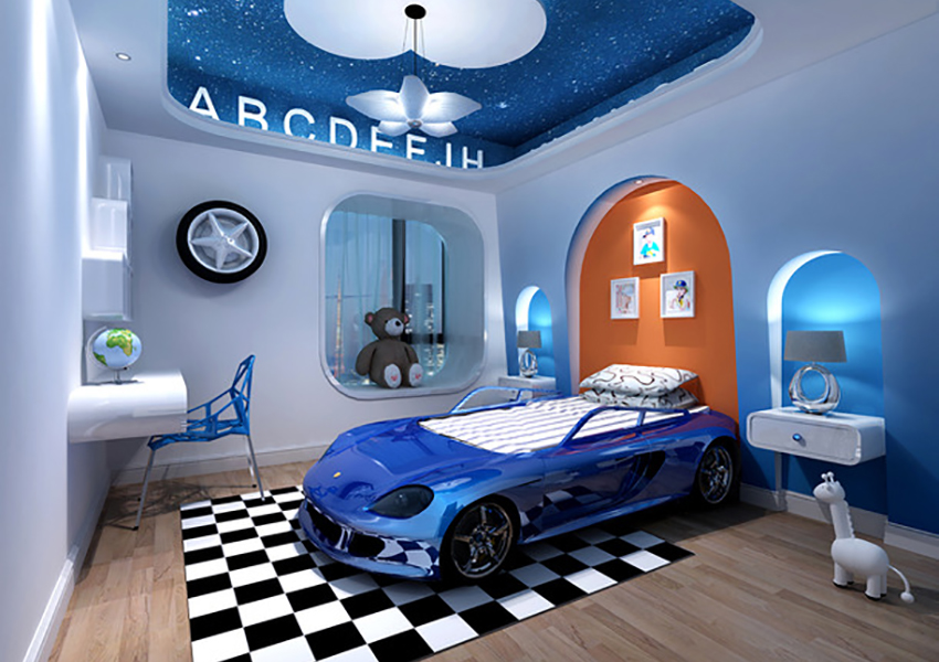在設(shè)計(jì)兒童房時(shí),應(yīng)避免單調(diào)的純白色調(diào),可以根據(jù)孩子的年齡、喜好、性別設(shè)計(jì)得個(gè)性化一些,增加趣味性。不同的色彩可以刺激兒童的視覺神經(jīng),開發(fā)兒童的學(xué)習(xí)能力。童房的色彩和孩子的性別有關(guān)。