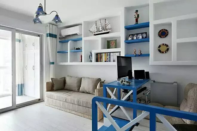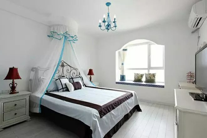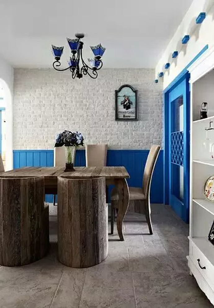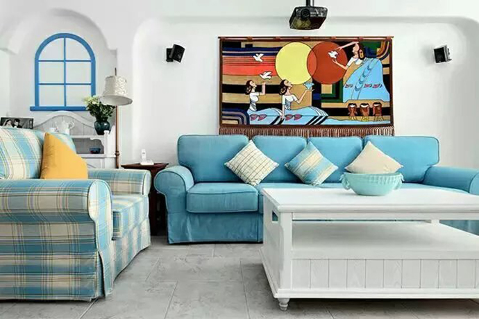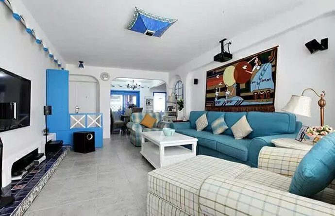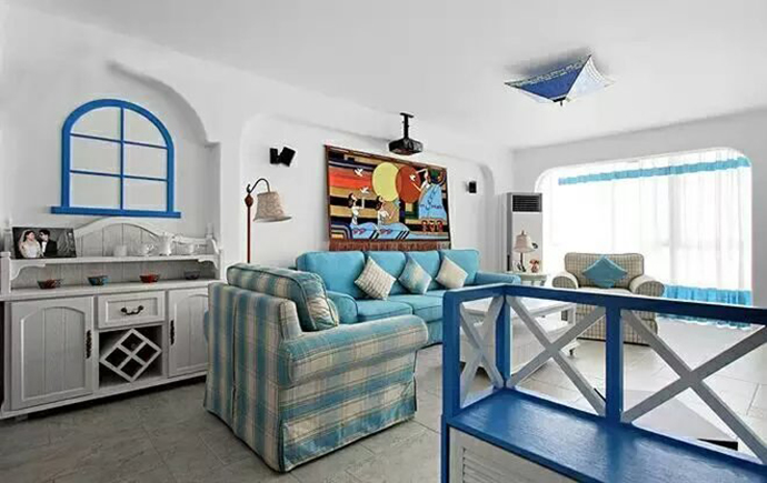 在家具選配上,通過擦漆做舊的處理方式,將海洋元素應(yīng)用到家居設(shè)計中,給人自然浪漫的感覺,在造型上,廣泛運用拱門與半拱門,給人延伸般的透視感,在材質(zhì)上,一般選用自然的原木、天然的石材等,用來營造浪漫自然。