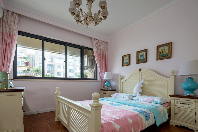 空間的整個(gè)六面體都是五彩且清淡的色彩呈現(xiàn),且以暖色調(diào)充斥,盡顯溫馨與迷人的幸福。