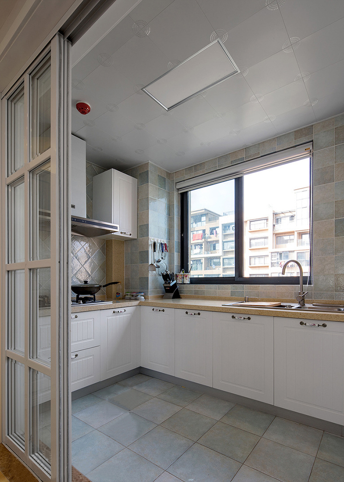 廚房設(shè)計(jì)主要以灰色為主,相對(duì)淺色系櫥柜和墻磚更耐臟并耐看。