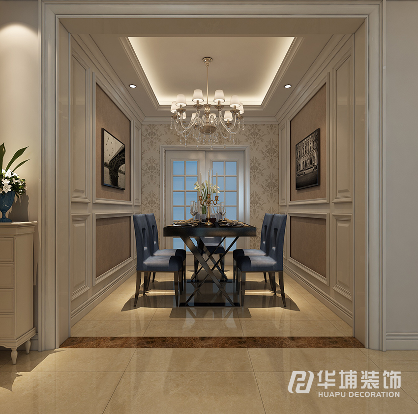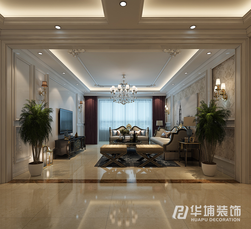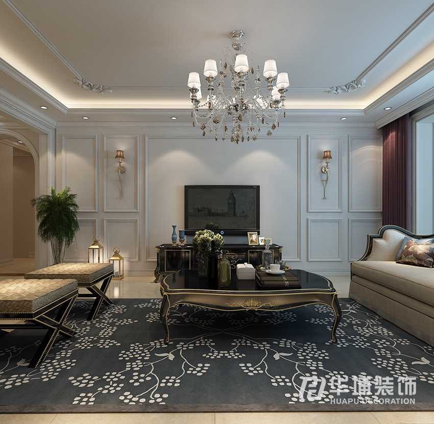 通過(guò)歐式造型、石膏線、家具、配飾達(dá)到最終效果。