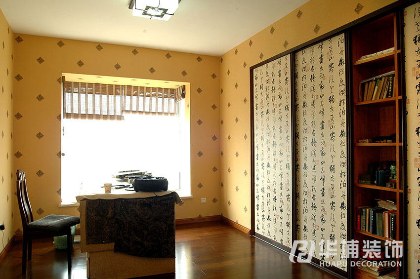 獨(dú)立書(shū)房為開(kāi)放式書(shū)房,與客廳空間融為一體又與臥室合二為一,分合皆宜。整壁的書(shū)柜穩(wěn)重而大氣又讓主臥室的門(mén)隱身,毫無(wú)痕跡。