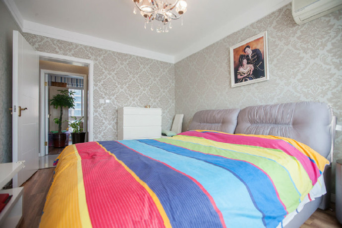 客廳側(cè)面,透亮的陽臺,在客廳做了個榻榻米,陽光透過陽臺玻璃窗照射怎個榻榻米