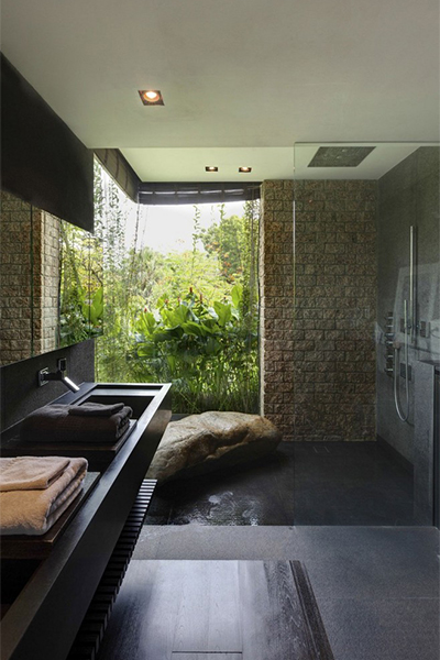 自然別墅衛(wèi)生間洗漱臺淋浴房。