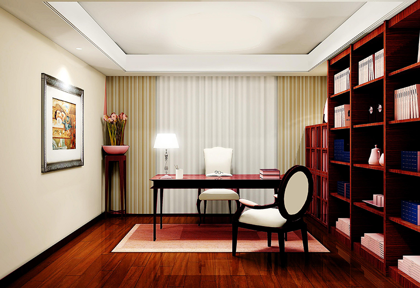 安靜對(duì)于書房來講十分必要的,所以在裝修書房時(shí)要選用那些隔音、吸音效果好的裝飾材料。