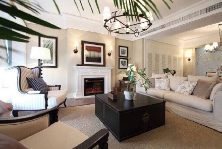 客廳,精致美式田園風(fēng),簡約白色沙發(fā),還有一個(gè)挺好看的壁爐