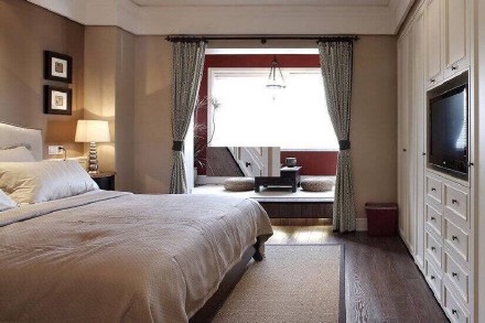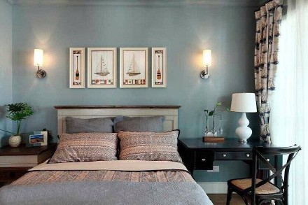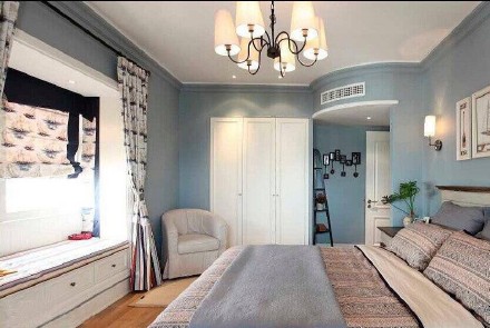臥室,淡藍(lán)色色彩搭配,陽臺(tái)照射整個(gè)空間