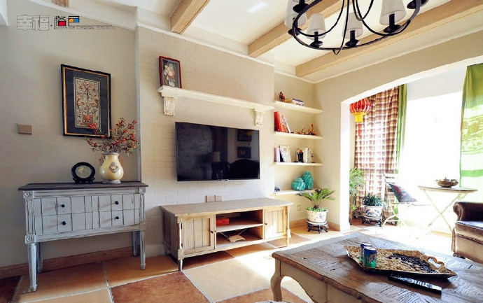 客廳,電視背景墻,陽臺(tái),田園風(fēng)