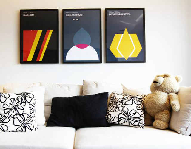 沙發(fā)后面的墻面上的三幅現(xiàn)代抽象畫兒,也為整個客廳增色不少。