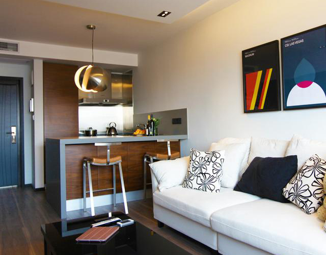 小戶型的大逆襲,空間雖小但設(shè)備相當(dāng)齊全,客廳一角的小廚房搭配的剛剛好。