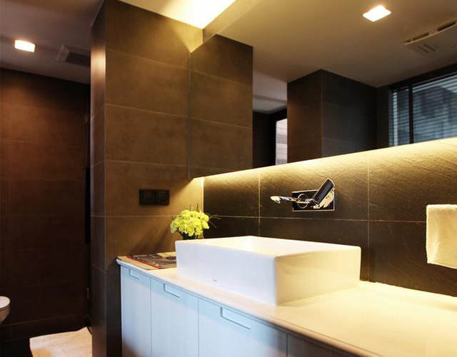 小戶型的的煩惱就是衛(wèi)浴間的空間利用不合理,整體選用白色系的衛(wèi)浴設(shè)備,跟深色系的墻磚形成鮮明的對比,頓時覺得整個空間寬敞了不少!