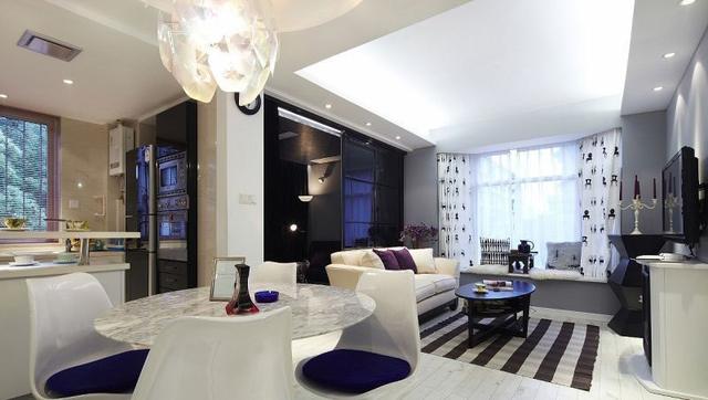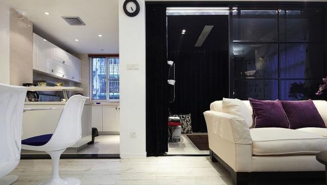本案例為混搭風(fēng)格,客餐廳以黑白為主色調(diào),空間雖小,卻精致溫馨,為都市上班一族營造家的濃厚氛圍。