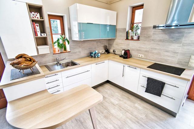 高處的窗戶上放置幾盆綠植,去除了廚房的油膩,清新之氣就這樣蔓延開來。
