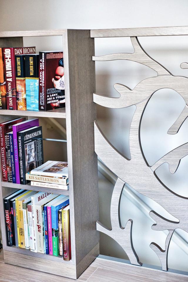 一個木質(zhì)的書柜依梯而建,充分利用了空間。