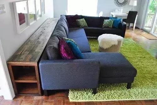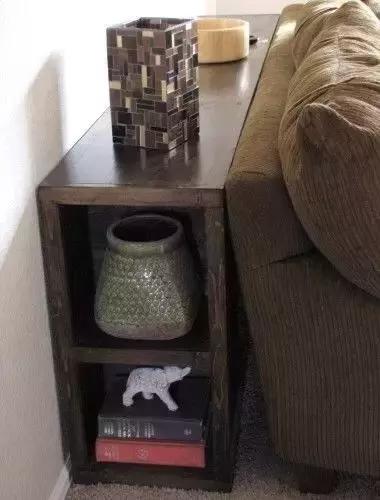 沙發(fā)大家都是靠墻放的,沒人想過利用沙發(fā)后面的空間吧?試試看往前挪個5cm,馬上就多了個置物架!放點花草、臺燈什么的還是綽綽有余的!還能裝飾呢。