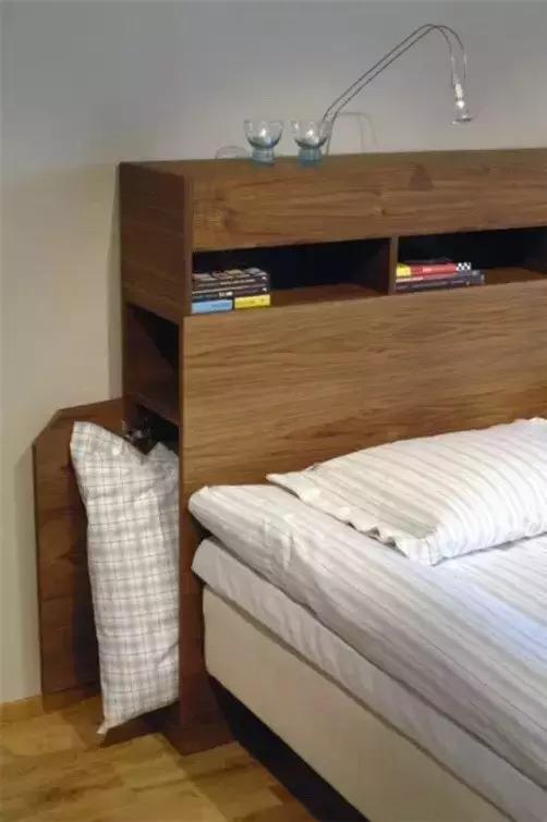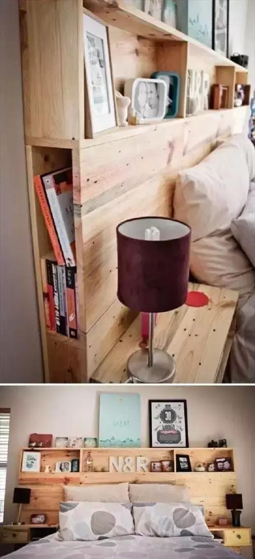 同樣的方法還可以用在床頭,下面這種抽拉柜還挺不錯的。