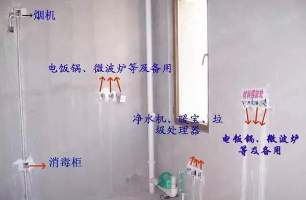 毛坯房裝修廚房插座最多的就數(shù)廚房了。這里的插座要分兩類,一是像冰箱、電磁爐、電飯煲、油煙機(jī)這種常用電器就每個(gè)留一個(gè)插座,而像凈水機(jī)、小廚寶這些分散開來的電器也要單獨(dú)預(yù)留一個(gè)。而像是榨汁機(jī)、豆?jié){機(jī)、微波爐等等不是天天要用的小電器就可以匯聚在臺(tái)面的一個(gè)角落,裝一個(gè)接線板其實(shí)更實(shí)用。