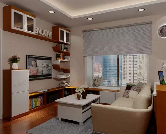 在空間有限的情況下,小型家具是您的首選,因?yàn)樾⌒图揖弑纫话慵揖咭紦?jù)面積小,會(huì)有種空間似乎變大了的感覺。小客廳首選的家具是低矮型的沙發(fā)。這種沙發(fā)有低矮的設(shè)計(jì),沒有扶手,流線型的造型,擺放在客廳中感覺空間更加流暢。根據(jù)客廳面積的大小,可以選用三人、兩人或1+1型的,再配上小圓桌或迷你型的電視柜,讓空間感覺變大不少。其次就是盡量選擇圓弧造型的。有棱有角的家具,把空間分割得很零碎,看起來小小的空間更顯得凌亂。