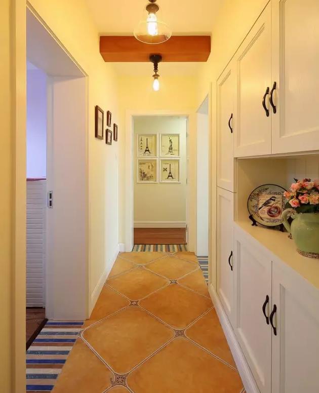 或者在走廊的盡頭也可以像下圖一樣做個小柜子,畢竟居家過日子柜子可是不能少,不然家里一定亂糟糟的。