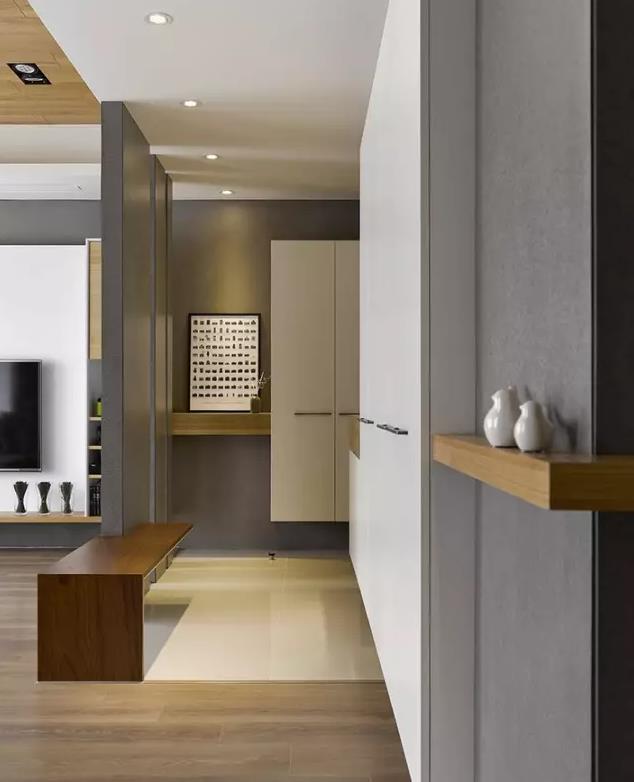如果玄關(guān)不打算做成衣柜的話,中間部分空出來反而會更實(shí)用美觀。在空余位置放些擺件,可以讓整個家看起來更有活力。
