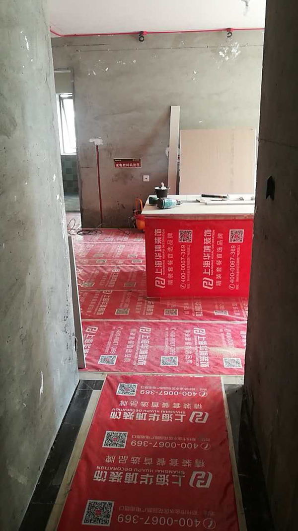 從入戶門開(kāi)始,對(duì)地面成品使用專用保護(hù)膜進(jìn)行成品保護(hù),避免施工過(guò)程出現(xiàn)意外損壞。