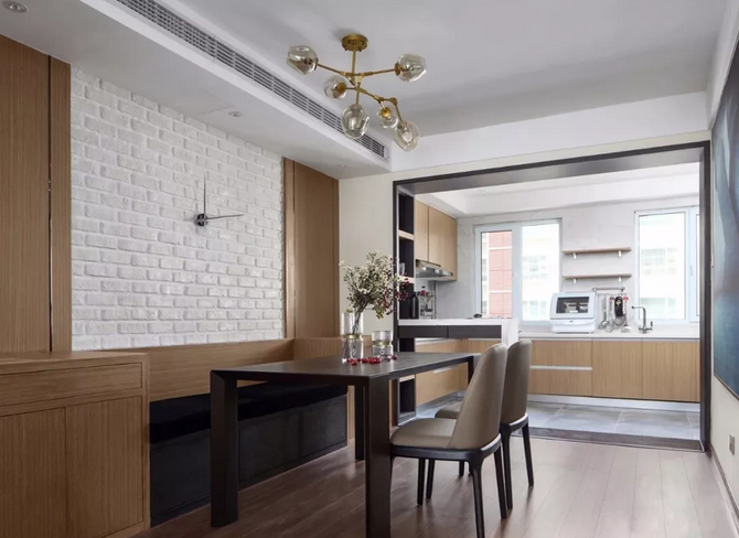 寬大門洞+黑框玻璃推拉門是這兩年的網(wǎng)紅款,常用在廚房和餐廳之間,打造一個半開放式廚房,門洞高還能讓室內(nèi)空間更顯開闊,無形拉高層高。