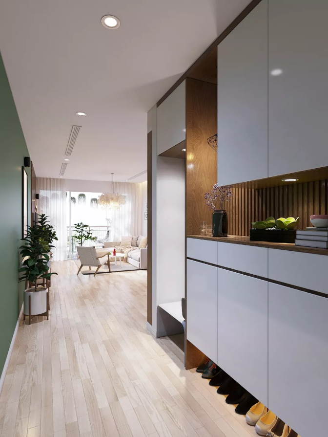 2、玄關鞋柜底部留空,日常穿的鞋子可以放在下面,比較方便。定制鞋柜做到頂,增加收納空間,不落灰,好清理。
