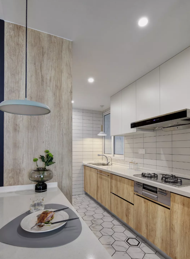 14、廚房的墻磚千萬別選擇小瓷磚,瓷磚縫隙會很多,很容易出現油污污垢,到時候清潔非常的困難。
