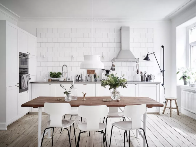 11、餐桌椅擺放千萬別挨著墻,不然這個墻面很容易被磕碰壞的。