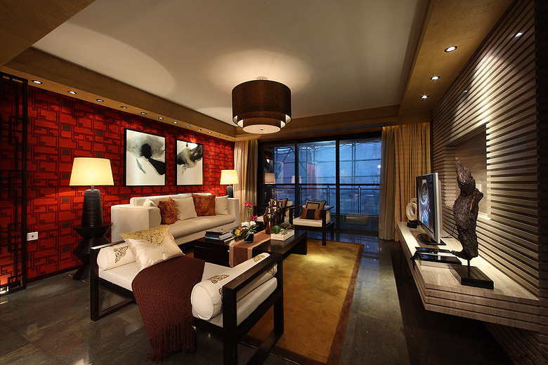 • 本案為新中式風格,中式元素與現(xiàn)代材質(zhì)的巧妙結(jié)合。